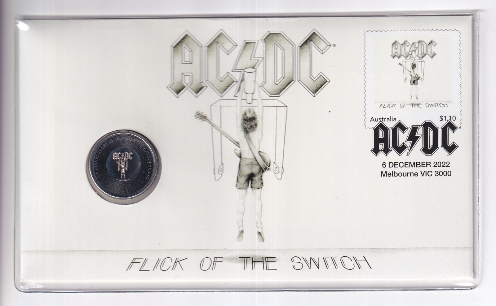 Celebrate your love for rock legends with the 2022 AC/DC Flick of the Switch PNC, featuring a striking combination of a 20c Royal Australian Mint coin and a $1.10 stamp. This limited edition postal numismatic cover is a must-have for collectors and fans alike, with a sequence number of 2022 Issue 26.